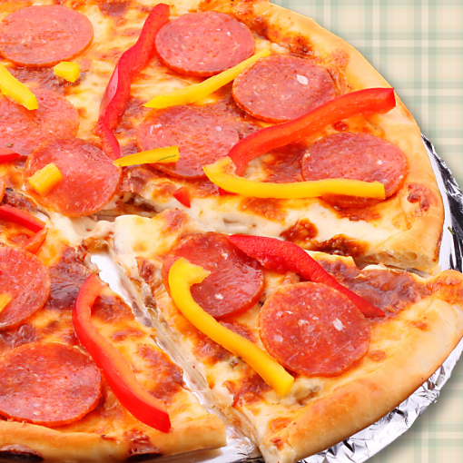 Состав: Фирменный соус, колбаса «Пепперони», сладкий перец и сыр «Моцарелла».